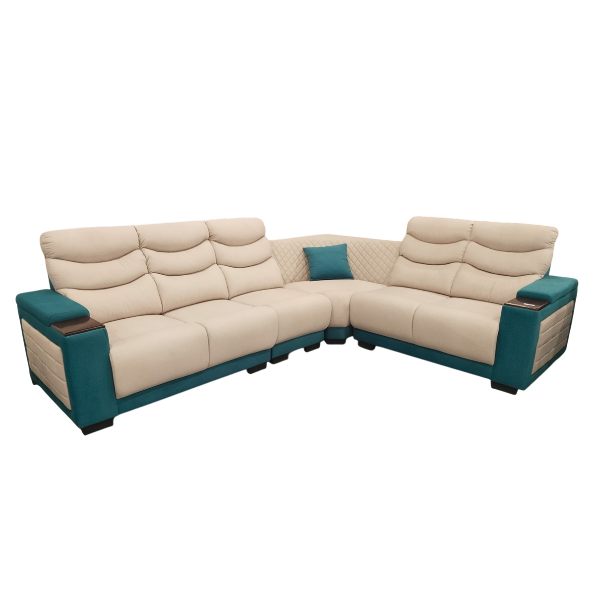 Each modular component includes carefully crafted pillows featuring soft fabric exteriors filled with high-quality Reliance Recron fiber, providing additional comfort and aesthetic enhancement that perfectly complements the essential soft fabric upholstery theme. These premium pillows offer excellent loft retention and resilience, maintaining their shape and supportive properties through regular use and frequent rearrangement of modular components while contributing to the overall 111 Model comfort experience. The Reliance Recron filling ensures superior breathability and long-lasting comfort while the soft fabric covering creates seamless visual continuity with the main upholstery, adding both functional comfort and design appeal to every possible modular configuration.