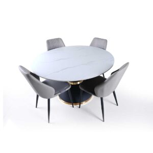 The thoughtful integration of artificial marble, metal, and fabric creates a dining set that exemplifies contemporary design principles while providing all the practical benefits modern families require. This material combination ensures durability, easy maintenance, comfortable seating, and sophisticated styling that works beautifully in today’s home environments.
