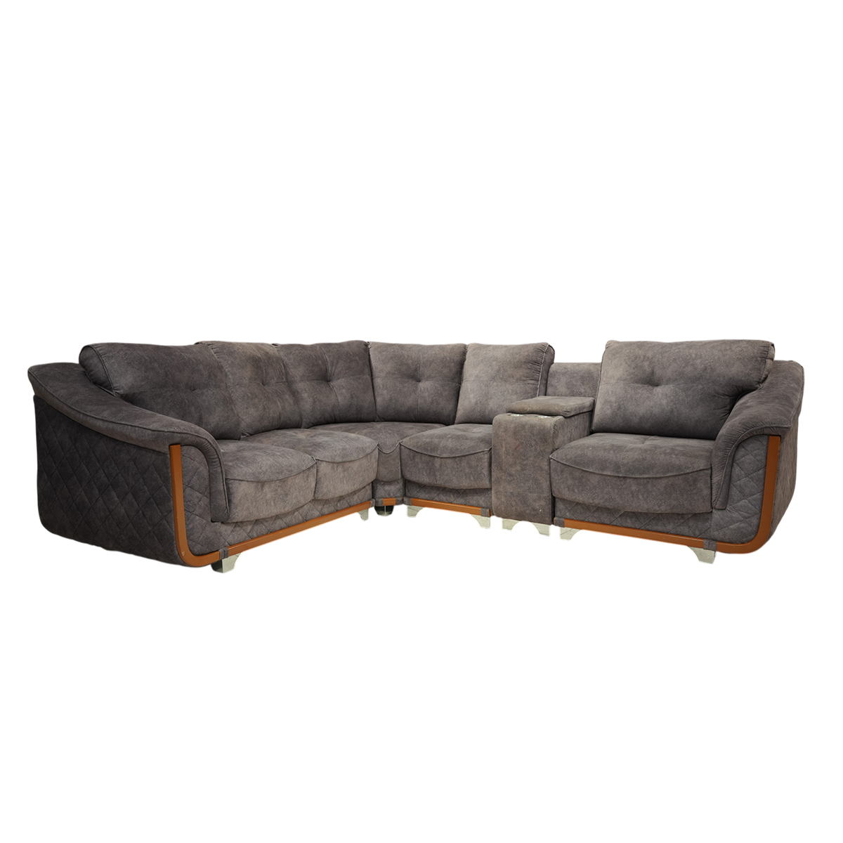 - Configuration: L-shaped corner seating arrangement