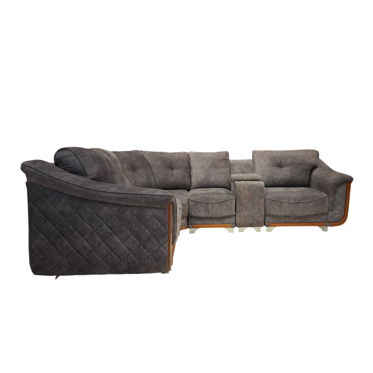 The entire corner configuration is elevated by sleek, modern metal legs that provide exceptional stability, superior weight distribution, and striking contemporary visual appeal throughout the extended frame. These precision-engineered metal supports offer sophisticated aesthetics while ensuring reliable foundation for the corner sofa’s expansive seating arrangement. The metal construction delivers outstanding durability, easy maintenance, and long-lasting performance, while adding a stylish modern accent that perfectly complements the luxurious suede upholstery and enhances the Barcelona model’s refined design character.