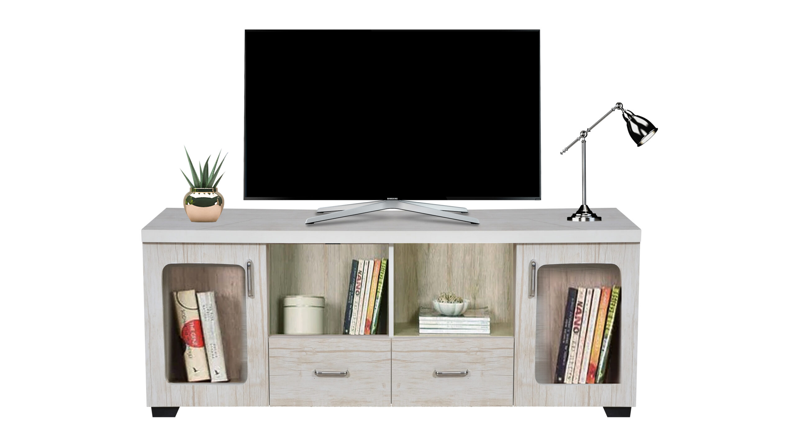 BENIN TV UNIT WITH TWO GLASS DOOR AND TWO DRAWS