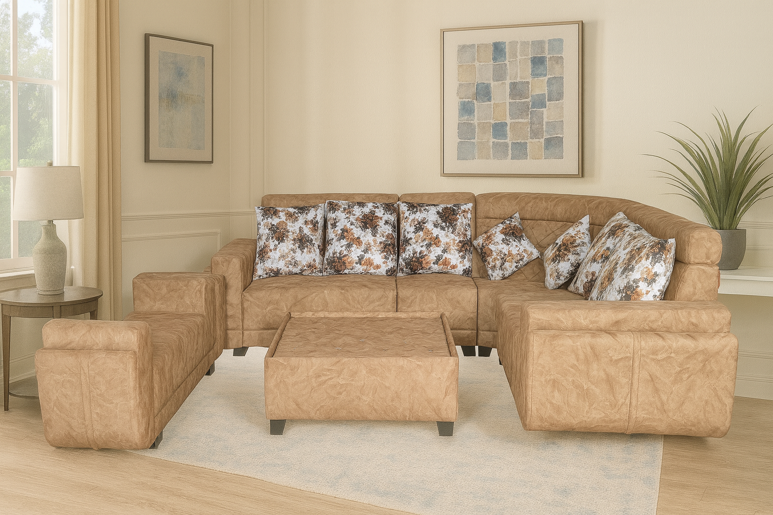 This Boat Corner set in a 2+2+1+C configuration creates a nautical-inspired seating arrangement with two two-seater sections, one single armchair, and a connecting corner piece. The collection features design elements that evoke the sleek lines and comfortable curves reminiscent of luxury yacht seating and marine aesthetics. This modular sectional offers exceptional flexibility, allowing you to create various seating configurations while maximizing corner space utilization in your living area. The boat-inspired design combines sophisticated maritime styling with plush comfort, making it perfect for those who appreciate both oceanic elegance and practical functionality. This versatile ensemble transforms any living room into a stylish harbor of relaxation, ideal for families who want to bring a touch of coastal sophistication to their indoor spaces.