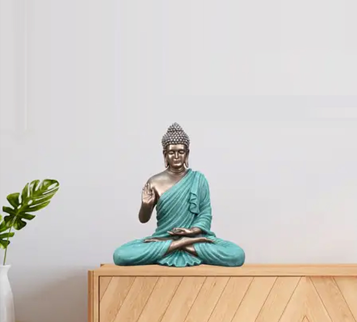 The 16-inch Buddha statue embodies peace and serenity, adding a calming presence to any space. Crafted with fine detailing and a graceful finish for a timeless spiritual appeal. Ideal for homes, offices, or meditation areas to create a tranquil and positive ambiance.