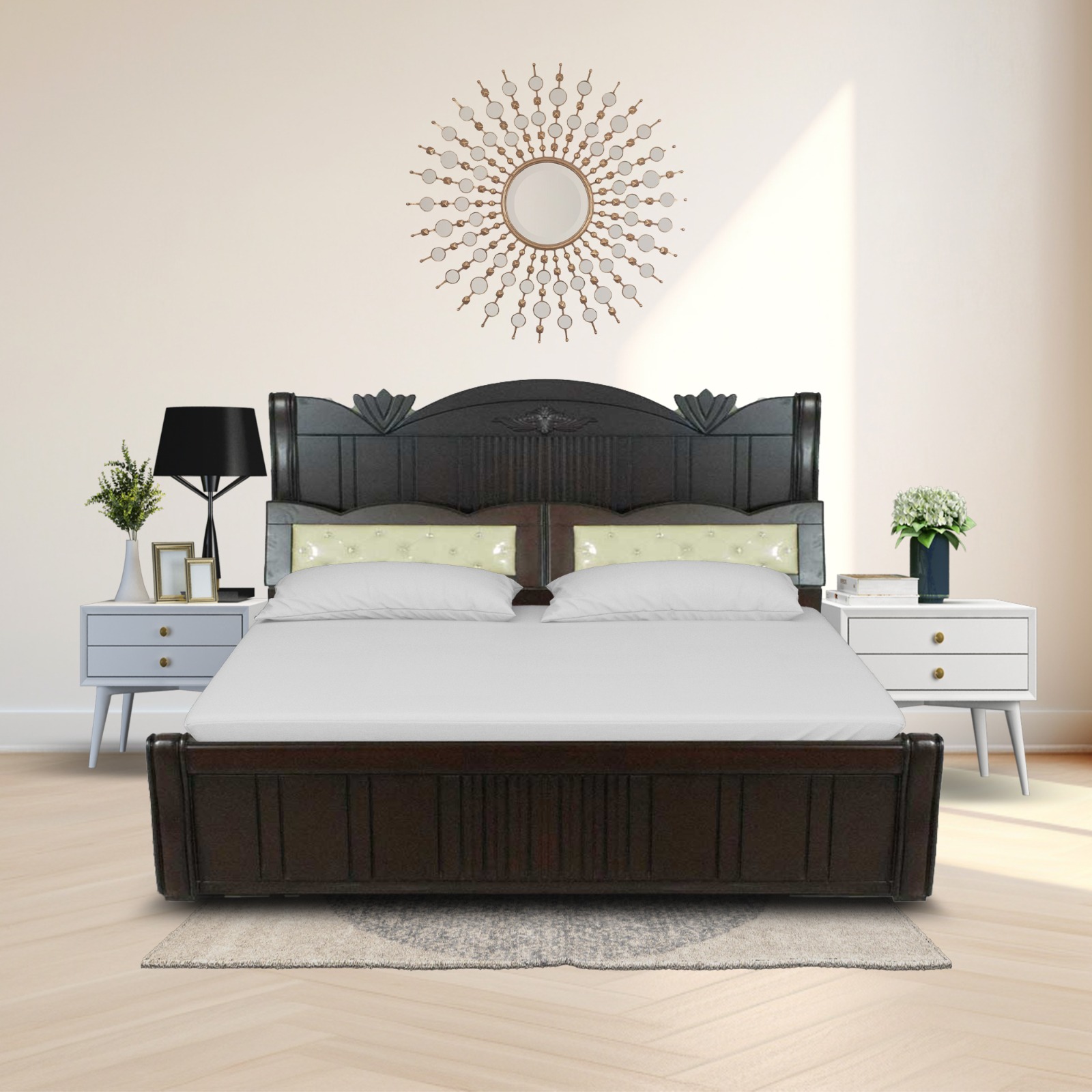 CARVING COUNTER COT WITH BOX STORAGE AND TWO DRAWS