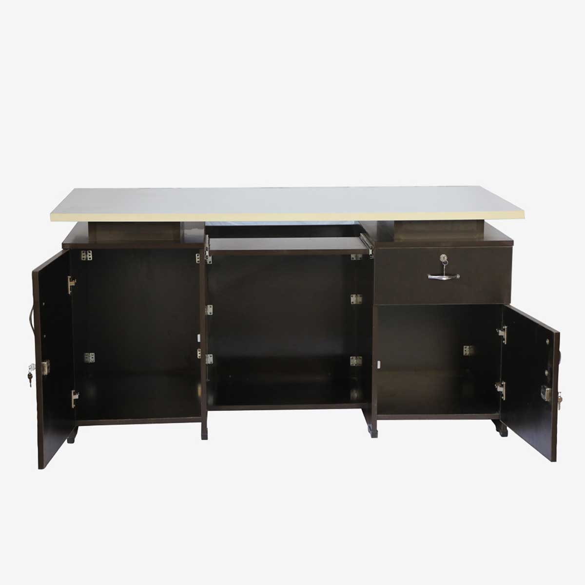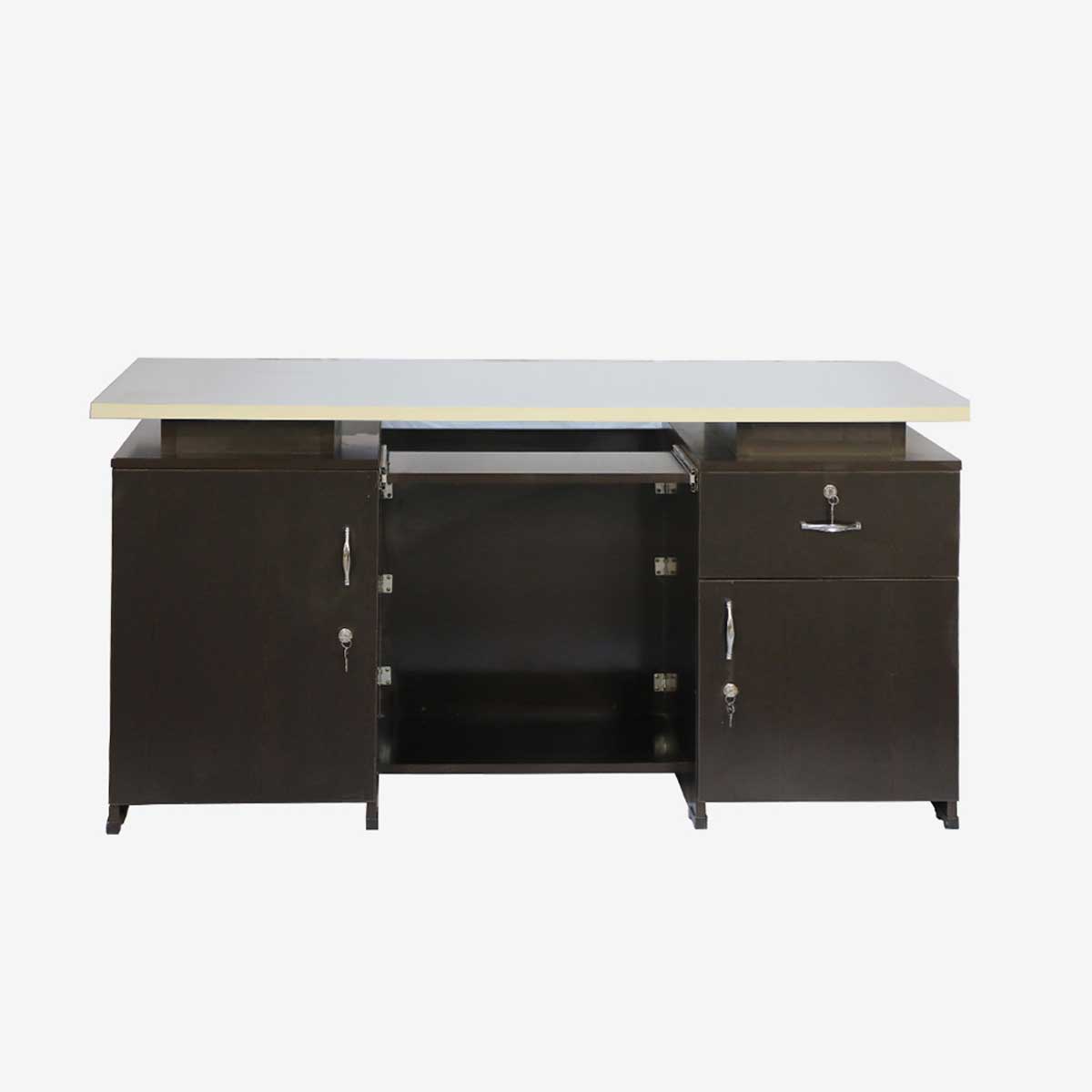 DOUBLE ARCH OFFICE TABLE WITH TWO FILE CABINATES AND TWO DRAWS