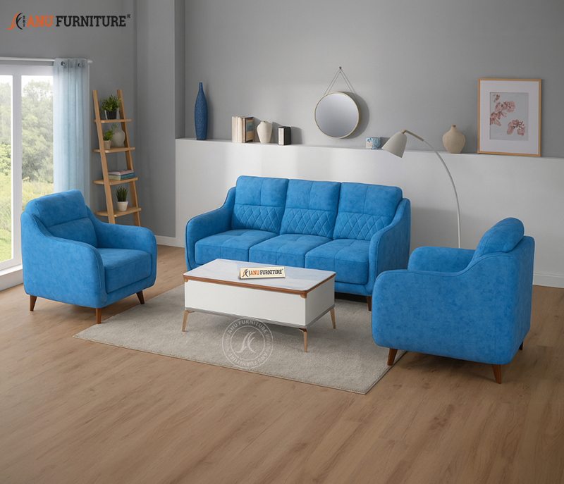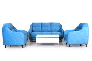 A stylish sofa set upholstered in smooth suede-feel fabric, built with kiln-dried, precision-crafted wood for lasting durability. Designed with sleek metal legs, it offers a modern look combined with everyday comfort and strength.