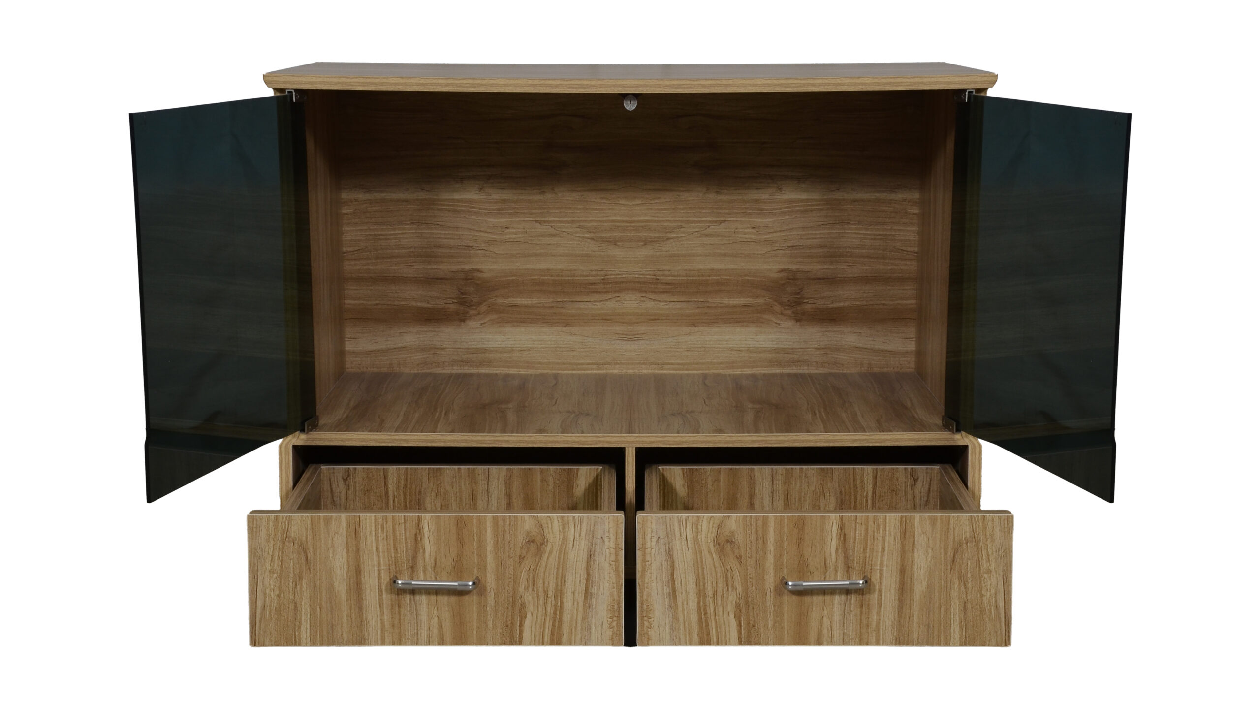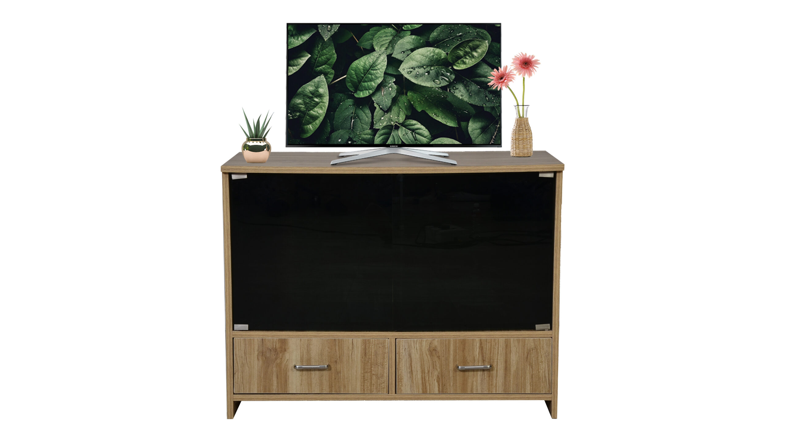 GLASS DOOR TV UNIT WITH TWO DRAW STORAGE