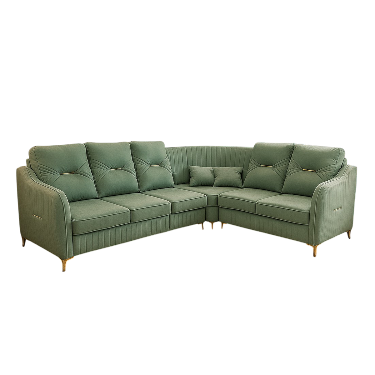 A spacious corner sofa upholstered in smooth suede-feel fabric, built with a strong pine timber frame for enhanced durability and support. Finished with sleek metal legs, it combines modern elegance with lasting comfort for stylish living spaces.