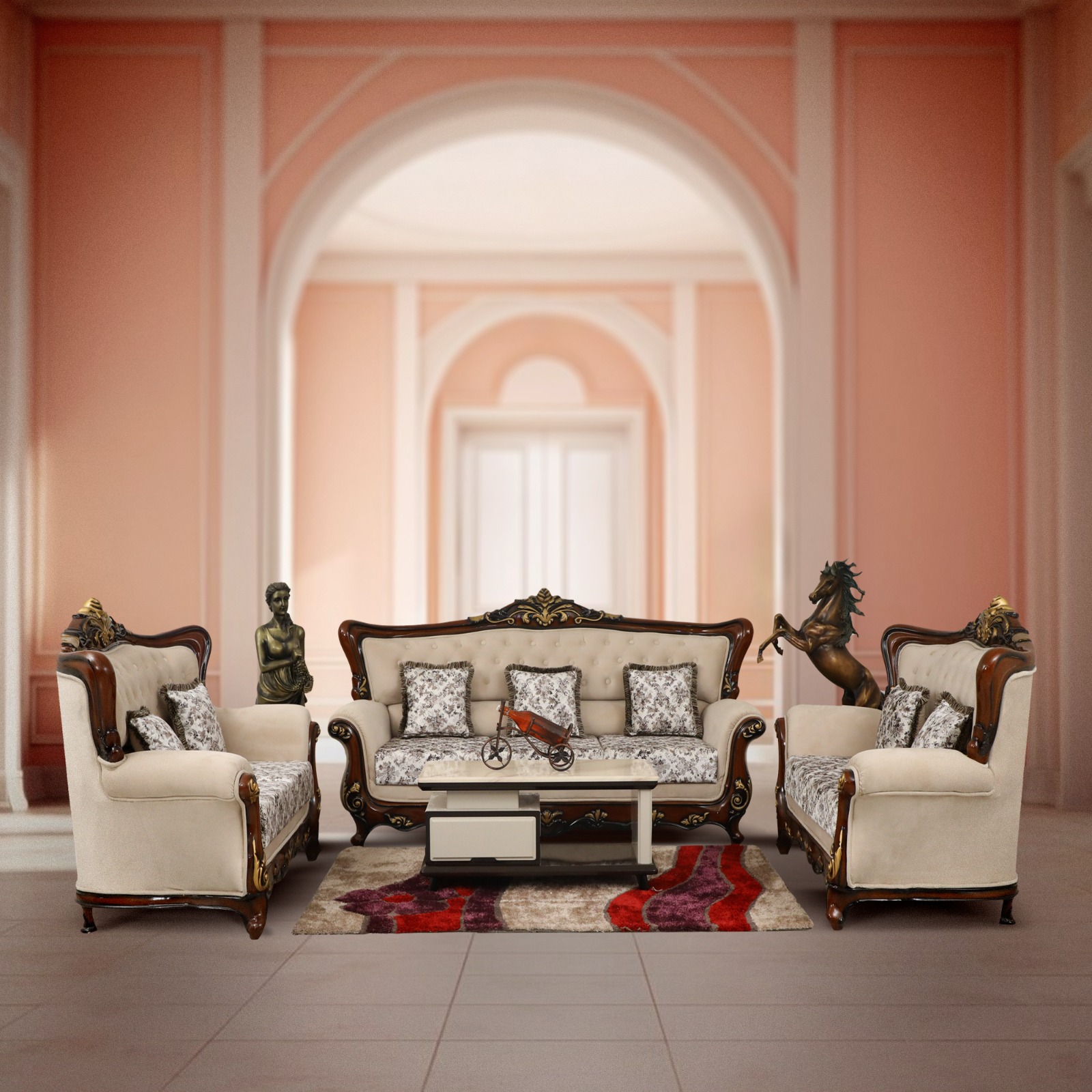 MDF WITH DECOPAINT TOP WITH TEMPER GLASS Dimensions :LENGTH 9.4FEET LOUNGER LENGTH 6.4 FEET